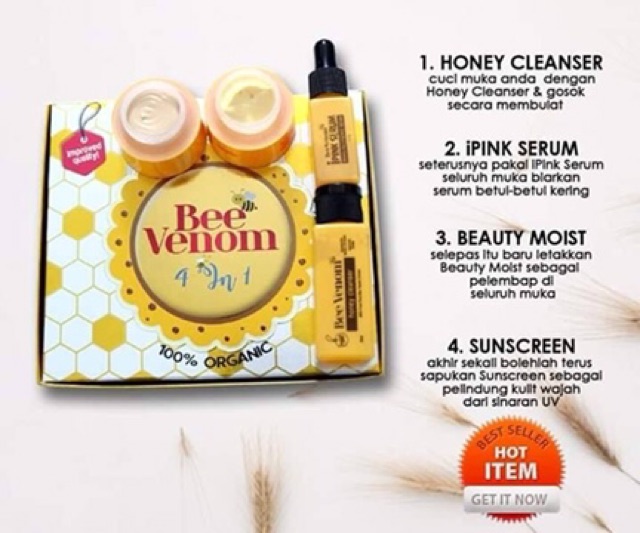 Cara pakai bee venom 4 in 1 Get link. BEE VENOM SKINCARE 4 IN 1 Produk bee venom ni merupakan produk. Bersihkn wajah terlebih dahulu dgn Bee venom honey liquid cleanser lap kering dgn tuala bersih ambil 1 kapaa muka dan titiskn 3 titis.
